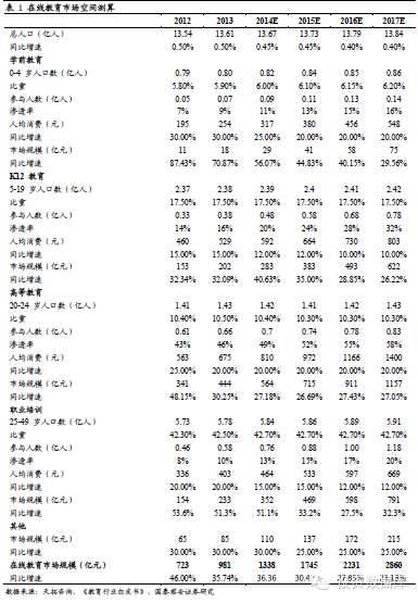 與眾不同的認識:市場認為教育行業增長緩慢,我們認為,在線教育市場空間巨大,隨著4G資費下降和智能手機的普及,以及盈利模式的創新,在線教育尤其是移動端在線教育將加速增長。