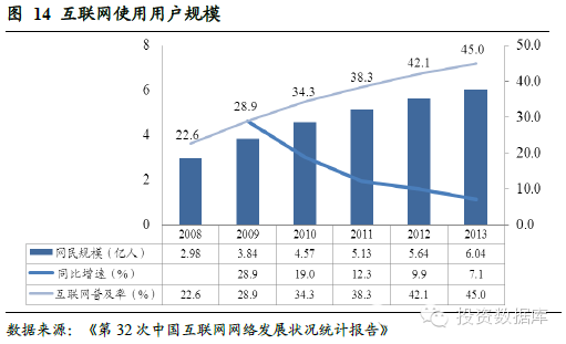 我國在線教育未來發展空間巨大,到2017年市場規模有望達到目前的三倍。一方面,我國教育行業支出與GDP比值不到美國的一半、僅為印度的3/4,未來教育支出仍有巨大的提升空間;另一方面,我國互聯網滲透率由2008年的23%提升至2013年的45%,隨著互聯網的快速興起,教育從線下逐漸轉移到線上是發展的必然趨勢。